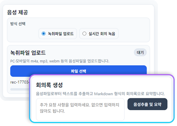 회의 음성을 실시간 분석하여 핵심 내용과